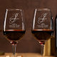 Wedding Gift for couple OUR LOVE STORY GIFT elegant chic laser etched wine glasses for bride and groom. With a modern classic inspired monogram last name initial, their first names, and the wedding date on a simple elegant wine glass with laser etching. Perfect gift for a wedding gift, wedding anniversary, vow renewal, couple's shower, bridal shower, engagement party, or housewarming gift. Click personalize this template to customize it with the groom's family's last name initial for the monogram, each of their first names, and the wedding date quickly and easily. NOTE: Your new personalized glasses will only show correctly at the end of the photo list. The design is laser engraved on the glass, dishwasher safe, and smooth to the touch. Couple's Wedding Gift LOVE STORY Laser Etched Wine Glass, is part of the Newlyweds & Wedding Gifts Collection in this store, which offers a gorgeous collection of unique personalized must-have gifts for newlyweds and for wedding gifts. 30 Day Money Back Guarantee. Ships Worldwide Fast.