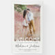 Welcome guests to a stylish couples bridal shower with an elegant custom photo vertical party banner. Picture and all text are simple to personalize. (IMAGE PLACEMENT TIP: An easy way to center a photo exactly how you want is to crop it before uploading to the Zazzle website.) The modern minimalist black and white design features one image of your choice, chic handwritten style script calligraphy, and art deco inspired vintage typography. This couples wedding shower welcome sign is a stylish way to share an engagement picture as part of your special day celebration decorations. Congratulations to the bride and groom!