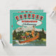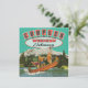 Fabulous Couples Weekend Getaway Party with a reworked postcard of two girls and a guy balancing in a canoe in the bathing suits with a mountain background. Soft focus with slight textures of a vintage postcard. Hand drawn illustration of a retro sign to welcome your gals and guy friends to a great weekend.