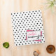 A kitschy coupon organizer featuring a background design of small black polka dots over white covering entire outside surface. Personalize with your name over pink and white coupon and scissors design at bottom right. Personalize the back with "If Found" information.
