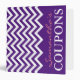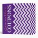Personalized purple and white chevron pattern coupon binder. Custom coupon book with personalizable name, zig zag pattern print and elegant label. Cute personalized couponing gift idea for men women and kids. Create your own for coupon queen wife, couponer husband, dad, mom, mother, aunt, sister, grandma, daughter etc. Stylish zigzag stripe couponbook, inserts not included. Custom grocery coupon holder for your coupon code collection. Save money on good deals and discount offerings. Big large thick folder with trendy print. Pretty DIY coupon organizer design with classy script calligraphy typography in coral pink color. Also makes a beautiful recipe saver cook book for kitchen. Just change the wording. Customizable background color.