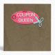 This 2" avery binder has a brown paper bag background with coupon queen written on a tag on the front. On the spine, coupon savvy is written with a dollar sign. On the backside, there is a pair of scissors with a dollar sign clipping some coupons. Some elements are Graphics by Dotted Daisy Designs at MyGrafico