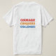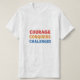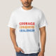 Write a short description of the t-shirt design for the image of "Courage Conquers Challenges."