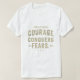 Embrace the power of resilience with our "Courage Conquers Fears" t-shirt. This design features a bold, fearless lion standing tall against a backdrop of stormy skies, symbolizing the triumph of bravery over adversity. Perfect for those who face challenges head-on, this shirt is a reminder that courage is the key to overcoming any obstacle. Wear it as a badge of strength and let the world know that fear has no place in your journey.