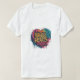 The t-shirt design features a vibrant, abstract heart shape filled with splashes of colorful paint. Inside the heart, the phrase "COURAGEOUS HEARTS CONQUER" is boldly written in a dynamic, graffiti-style font. The design conveys a message of strength, resilience, and the power of a courageous heart to overcome challenges. The overall aesthetic is energetic and inspiring, making it a suitable choice for individuals who value positivity and motivation.
