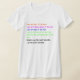 My overall review is that the T-shirt is nice, it fits true to size however the font is significantly smaller than advertised and you can't read it. The printing is unreadable and there is a strain to read it. It does not look like the advertised product. Maybe the shirt color is darker or a larger more visible font should have been used. Photos with and without flash and font is barely legible.