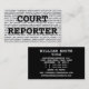 These black and white business cards featuring all the terms and words that lawyers and judges use and are perfect for any court reporter, they are sure to get noticed and stand out in the industry.