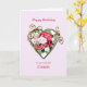 A romantic birthday card. A painting of roses is framed by an embellished golden heart. Give your cousin a birthday greeting with a beautiful painting of a bouquet of roses.