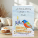 This charming watercolor and pen illustration features a Painted Bunting enjoying a slice of carrot cake, a nod to February’s National Carrot Cake Month, with a soft iris flower thoughtfully styled as a birthday candle holder. The iris, a traditional February birth flower, adds a meaningful seasonal detail. Together, these February-inspired elements create a warm, artistic birthday card perfect for celebrating someone born in this quiet winter month.