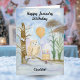 Soft and serene, this hand-painted watercolor captures a Snowy Owl resting on a winter branch beside a layered vanilla birthday cake topped with gentle purple frosting and glowing candles. Ivy-covered trees in the background add a quiet January charm, making this a sweet and thoughtful birthday scene created especially for a cousin who loves birds, nature, and peaceful winter moments.