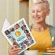 A smiling sun yellow and orange decorative sun on a blue background of rays and clouds is in the middle of a photo collage of 18 pictures for you to share with your birthday cousin. This card is customized for Cousin but you can change it to any relationship or name that works for you. The inside of this big card has another spot for the birthday person's photo with yellow rays and the text says "The sun started shining a little bit brighter on the day you were born!" This card is bigger and better than a regular card size and is bound to tickle their happy heart.