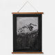 A black and white landscape photograph of a cloud filled sky trying to wrap itself around a snowy mountain. Trees cover the surrounding landscape of the taller mountain top. Image Copyright ©2023 Kimberly J Tilley. zazzle.com/store/developingnature