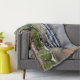 A quality printed throw has its advantages. This is a much finer weave throw than its loopier cousins, and though lighter, it is worth the investment for custom room accessorizing. The back is much prettier than the typical brown, and the fringe on the long sides very vivid, the selvage nicely done. Before photographing, I washed the throw in cold water, delicate, with a thicker woven throw the same size. On tumble dry low, this throw was dry in half the time as the other. This is a very practical quality if you use throws for furniture covers or to wrap up in frequently. The sleekness of the fabric makes it a great layer for accenting or protecting without the feeling of sitting on too much stuff. Perfect for napping or when you feel a light chill coming on. The color printing is beautiful and on this fabric, matched the design and color of my Photoshop image. This is an advantage for blending room fabrics and colors. The fringe on the short sides prints the colors from the design image and therefore varies from the side fringe. I streaked a white fractal line through the plaid pattern to give the illusion of weaving. This printed as crisp as an illusory thread, and put some white in the short side fringe, showing another advantage of print vs loomed- for artistic purposes, line lines, detail, and color integrity can be planned and preserved. My loomed throws have color limitations and more of a needlepoint texture. Print throws reproduce an exact image. The throw felt a little stiff straight out of the package, but this went away in the first delicate wash. Of course I searched the wash water for ink or bleeding and there was none.