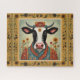 Create a unique space with this one-of-a-kind Cow Folk Art Floral Puzzle! A lovely bovine adorned with sunflowers! A cool AI-prompted design made just for you from Up On the Mountain!