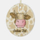 Cow's head illustration. Seamless cow pattern background. Custom text on both sides.