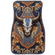 Cow Head Western Tooled Leather Damask design decorative car floor mats in tan, brown and denim blue colors. Rustic old wild west inspired artwork perfect for anyone who loves the country western ranch lifestyle. A stylish addition to your OTHER ride!