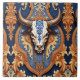 Cow Head Western Tooled Leather Damask Ceramic Tile