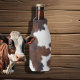 The cowhide leather details are simulated in the artwork. No actual cowhide or leather will be used in the making of this product.