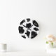 Cow spots pattern wall clock | Funny farm animal print. Cute Birthday gift idea for cow lovers, cowboys and cowgirls. Personalizable cowhide fur with your name, monogram or quote. Blochy black and white cow hide skin design. Western theme.