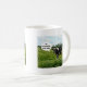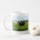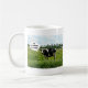 Black and white cow standing in the pasture, with a little humorous saying: "I'm outstanding in my field!"