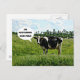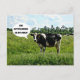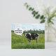 Black and white cow standing in the pasture, with a little humorous saying: "I'm outstanding in my field!"