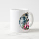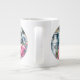 This jumbo size coffee mug is shown in white with a cute farm cow art print.