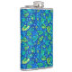 Flask featuring colorful floral pattern - yellow pond lily flowers, broad green leaves and blue dragonflies.