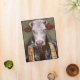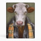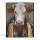 This design features a portrait of a cow in a leather jacket and scarf.
