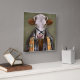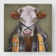 This design features a portrait of a cow in a leather jacket and scarf.