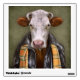 This design features a portrait of a cow in a leather jacket and scarf.