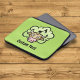 Surprised farting cow cartoon. Custom background color. Custom text.