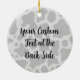 Lightweight, smooth, pure white ornament with nice sheen. Perfect size to be seen from across the room ... and to attract closer inspection! Price was great for ordering enough for the whole family! Clear, bold black design just as requested. Matches the order exactly. Just so nice!
