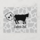 Farting cow silhouette. Seamless cow pattern background. Vector elements with fully customizable color fills. Custom text on both sides.