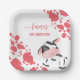 Cow party tableware pink cow pattern personalized name party plates. Cute baby cow for farm barnyard birthday.
