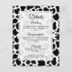 Details wedding invitation enclosure card. Black and white seamless cow background pattern.