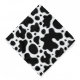 I really like this bandana. It is a little small, but it's made of t-shirt material so it stretches. I tie mine before I put it on which makes it easier since it is small. Once it's on, it NEVER comes untied and I rarely have to redo the knot. The printing is as shown. Crisp and clear borders.