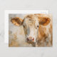A cute postcard for cow lovers featuring a white and brown cow portrait in watercolor. This artwork would be an excellent addition to a postcard collection, used for scrapbooking, or other craft projects.