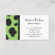 Elegant, stylish and sophisticated business cards with cow pattern in black, white and green color. Modern and trendy design, perfect for animal print lovers.