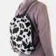 Make a statement with this fun and trendy cow print drawstring backpack. Perfect for carrying your essentials, this bag combines practicality with a unique cow print design, making it a stylish accessory for any occasion or everyday use.