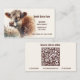 Cow business cards featuring a modern artistic cow design. Great for cattle, cow, dairy farms and more. Brown colors. Add all your business details including your name, title, contact information, and social media handles. Also, use the QR code for your website. Great mix of traditional and digital to meet your business needs. Use the template to create your own cow business cards.