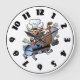 A funny design of a cow riding on top of a BBQ. This design is done in a cartoon style with a definite does of humor. The cow is sitting on top of the BBQ and has taken flight. This cow riding a BBQ design looks great on this clock. Perfect for yourself or as a gift