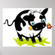 An adorable black and white cow with a flower in its mouth. This design looks really effective on these Poster