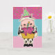 Colorful and oh so cute describes our Cow with Cupcake birthday card which you can personalize with your own message! If you love cows, you'll love this cute cow greeting card.