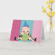 Cute and colorful Cow Birthday greeting card featuring a cow in a party hat holding a birthday gift. You can customize this cow birthday card by adding your own text before ordering!