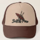Sport our Cowabunga Time trucker hat, featuring a skeleton peace sign and surf board in vintage burnt orange and green colors.