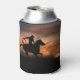 A cowboy and horse in a southwestern colored sunset. A country western rodeo themed cozy.