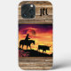 Personalize this Unique "One of a Kind" Cowboy and Longhorn Steer iPhone Case! It Features a Cowboy Riding a Horse Herding a Longhorn Steer During a Beautiful Orange Sunset...Surrounded by Wood Borders!