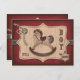 Western rustic design with rocking horse, rope, sheriff badge and saddle stitch elements for a baby postcard.