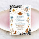 Saddle up for a memorable celebration with this western cowboy baby shower invitation! Featuring rustic illustrations like cowboy hats, boots, lassos, cacti, and cow print accents, this design perfectly sets the tone for a fun and festive gathering. The bold typography and charming western details make it ideal for honoring parents-to-be in style. Personalize with your event details and create a keepsake guests will love.