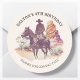 Customizable cowboy birthday party favor stickers featuring a cowboy on his horse riding with south western desert scenery.